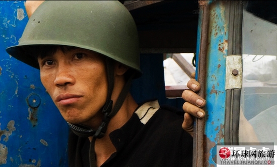 与中国的民间习俗不同,越南男人喜欢戴绿色帽子,无论是白发苍苍的老者还是蹒跚学步的小男孩,都带着顶绿帽子。最普遍的一种是像安全帽一样的硬壳帽,据说是战争的产物。