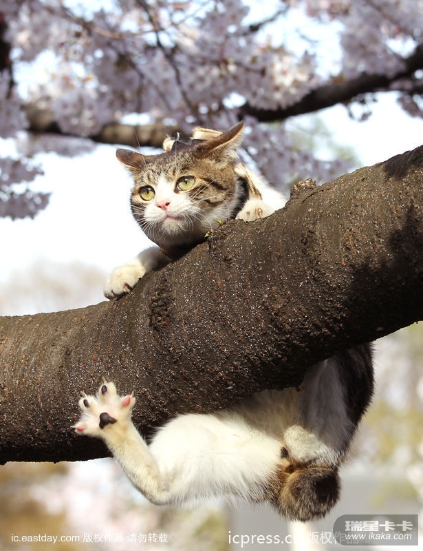 回复: 猫咪闲挂树枝赏樱花可爱无敌