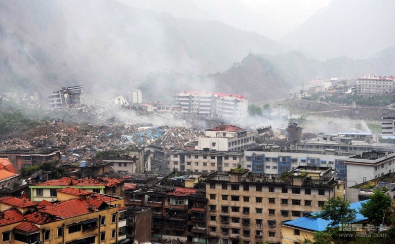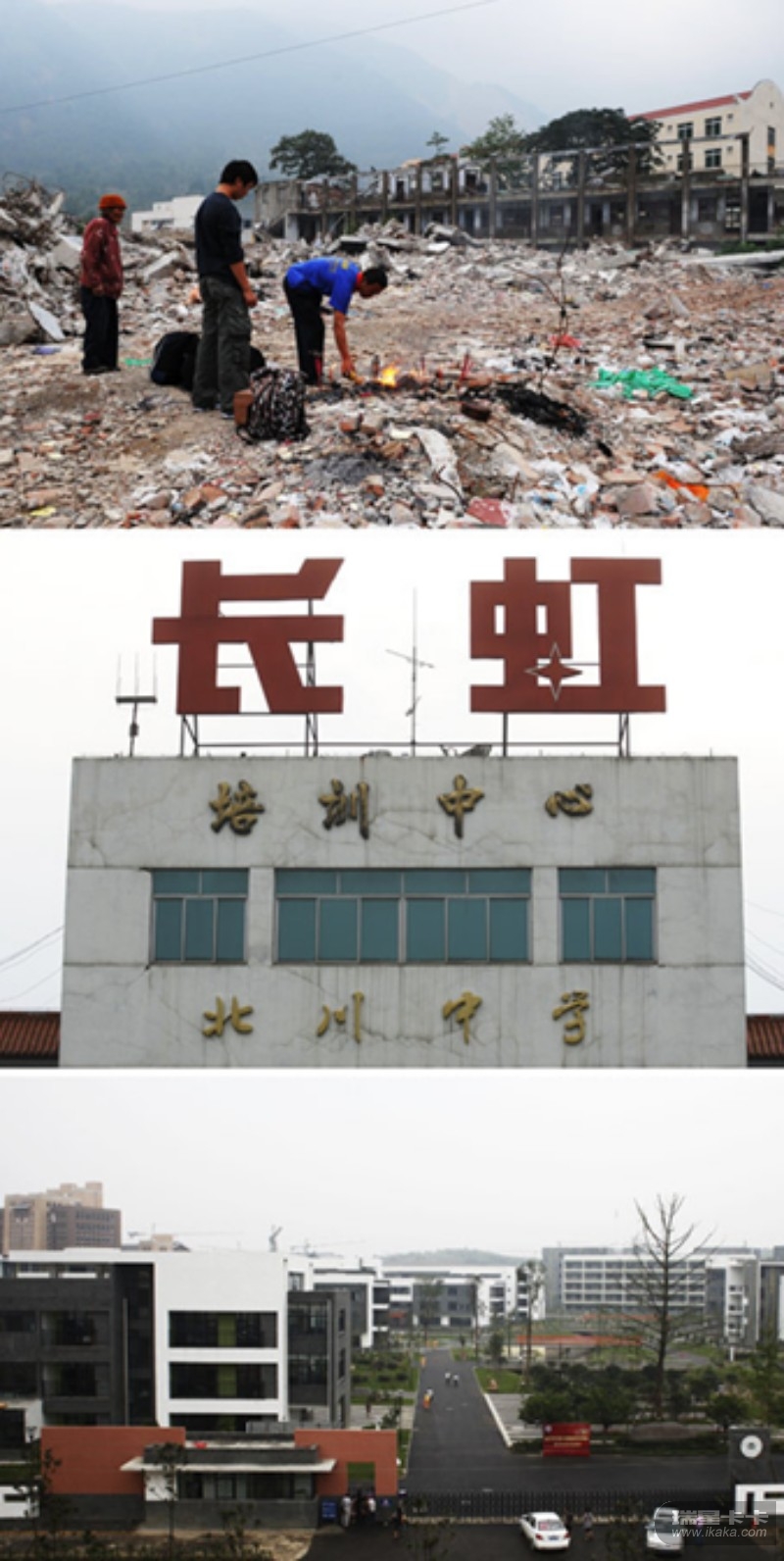 上图:老北川中学废墟(摄于2008年9月14日);