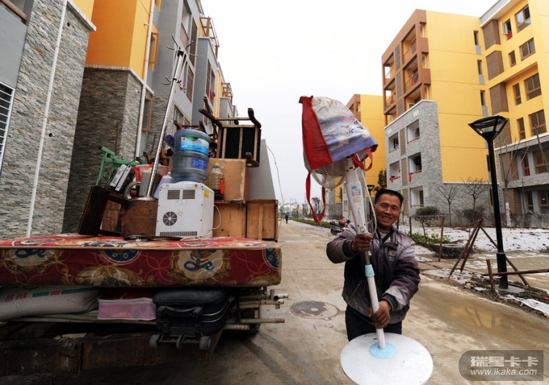 一位北川居民搬入位于新县城的安居房(1月27日摄)。