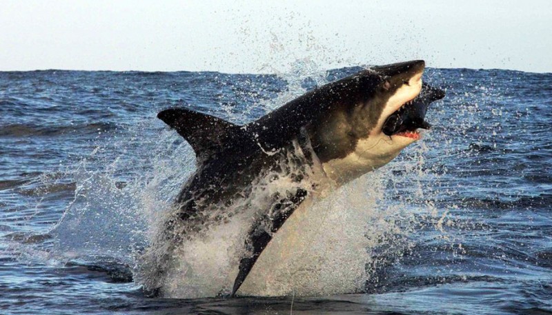 【 高 清 图 】大白鲨跃出水面4米捕食被拍