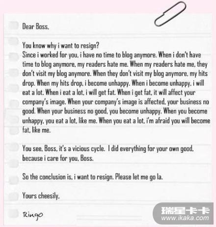 为你工作,没时间上博客,粉丝就会恨我,访问量就会下降,我就会不高兴,就会吃很多,就会发胖,就会影响公司形象,你就会不高兴,就会吃很多,就会跟我一样胖。所以……