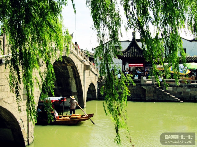 一条狭窄小路,两边是各式商铺,小而古朴,一直走下去到一块敞开地,路旁是镇上最大的两个酒家,再往前,就是一座石桥了,有桥便有水,有水就有船,也就出现了岸边垂柳,碧水泛舟,舟上船夫撑长篙,美人笑谈桥底现的景象了。是我从前没有亲眼见过,真切体会过的。