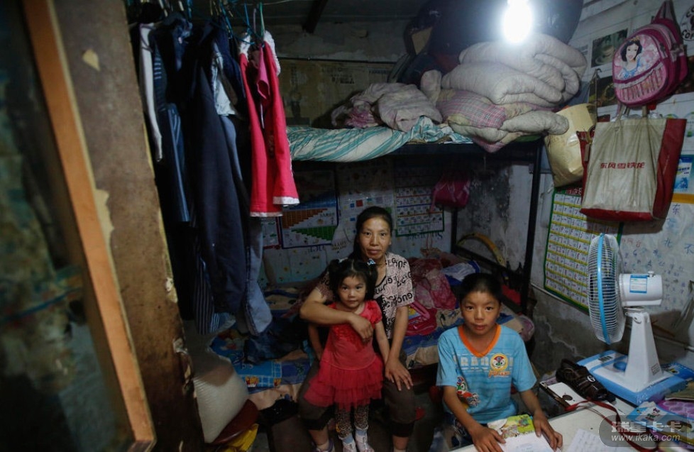 6月20日,北京外来民工居住区,杨微(音)和孩子栖居一个简易房里。
