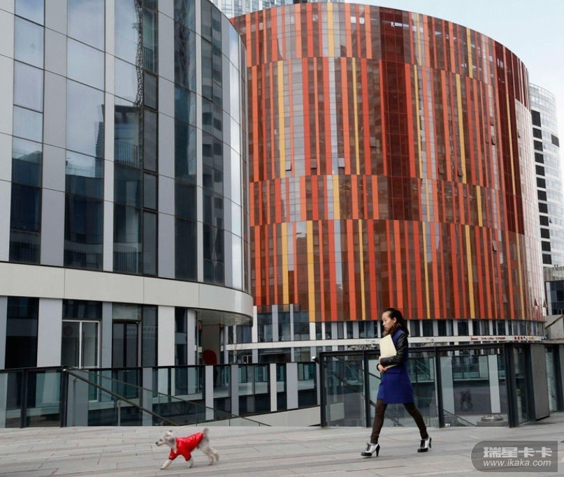2月21日,北京一处高档商住两用区,业主在楼下遛狗。