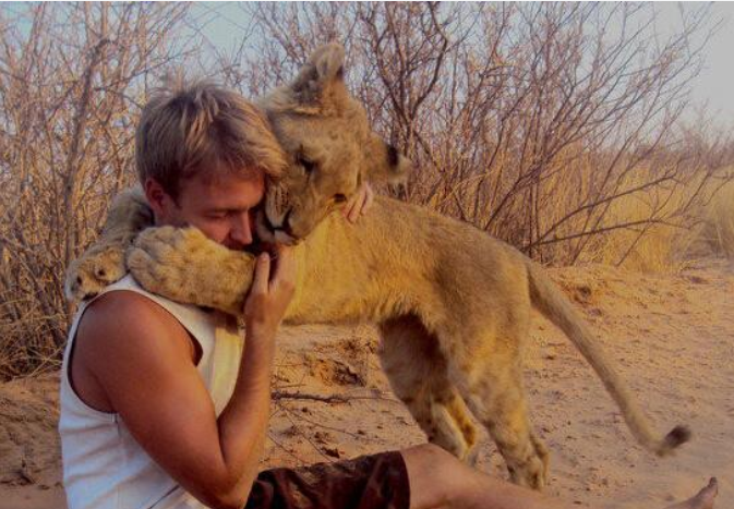 帅气小哥救下被遗弃的小狮子,长大后跟在主人身边寸步不离