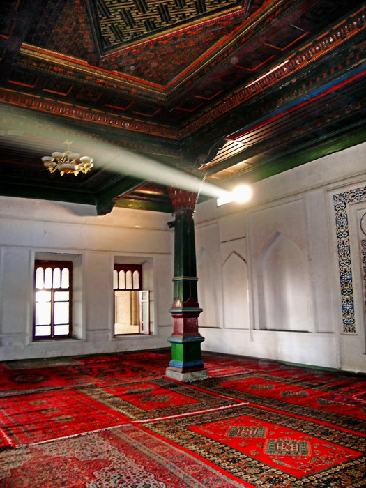 库车大寺。新疆第二大清真寺,仅次于喀什艾提尕尔,伊斯兰曾高度禁止绘画,建筑中很少有绘图,但是他们创造了无限图案被广泛应用于民族建筑中。