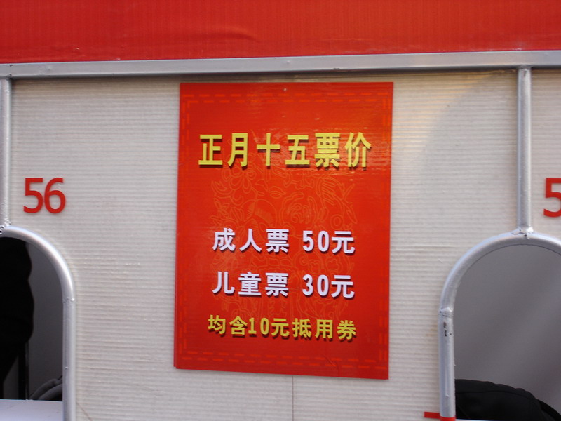 可能就是采用这种“办法”来限制人流的!在偶的印象中,卖入场劵的点不少!带小孩的、二个人“买票”的比较多些!偶就没有进去了!因为以后去还不会要钱!今天(正月十六)就不要钱了(前天正月十四每票30元)!