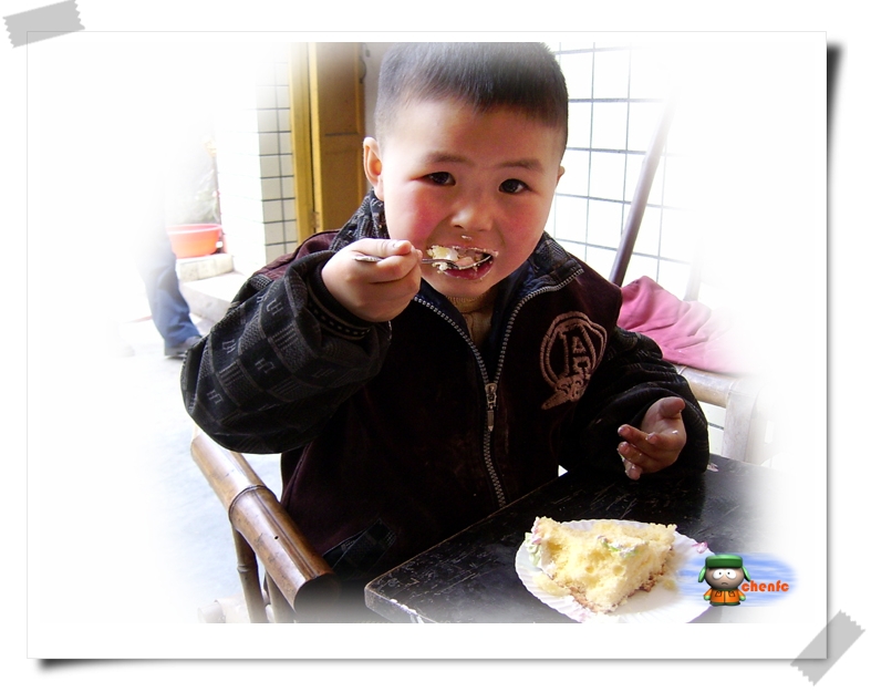 小家伙过4周岁生日,独自享受着生日蛋糕。