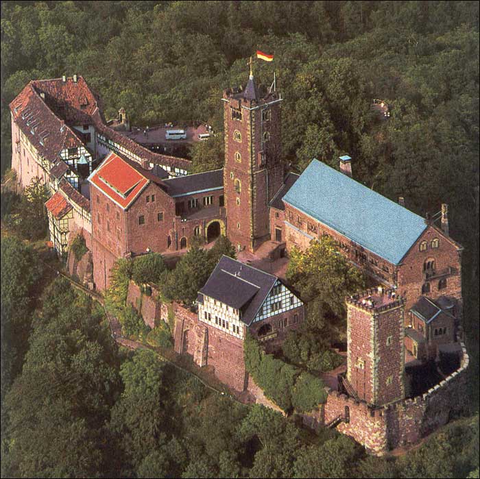 器皿和银剑,头盔和刀等,可以回味当时贵族的生活。虽然笨拙,但非常协调的木床和充满美丽的墙壁,显出城堡浪漫的生活。城中的礼拜堂里面通过幻灯,重现过去的壁画,用手挡住光线,就能看见模糊的实际的壁画。走上迷路般的台阶,就能到屋顶。