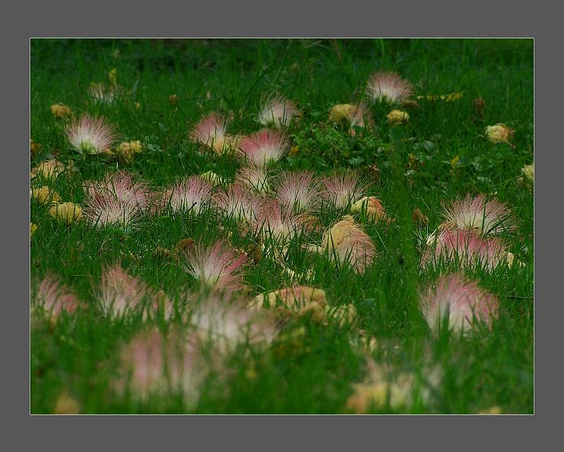 【驾鹰追阳的贴子】4楼是把合欢树的花摘到草地上拍的?