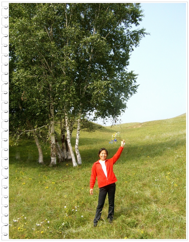 我的同事...她看不见最好...哈哈,谁让姑娘穿红衣服在草原上很耀眼呢!