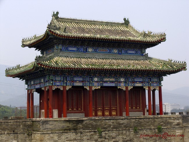 【紫金山的贴子】团城演武厅,是一座小小的椭圆形城池。建于清乾隆十三年,是用来检阅军事操练的场所,亦称阅武楼,俗名团城。这座小城,南北开门,门上建有城楼,北门石额刻“志喻金 汤”四字,南门石额刻“威宣壁垒”四字。据说,当时四川大小金川土司不服清廷统治,经常作乱。为了适应 征讨大小金川作战的需要,清朝创建“健锐云梯营”,在此筑城操练攻战 之术,城南大片旷野便是习武的场所。后来,清兵征讨大小金川大获全胜。为纪念这一战绩,还特建了“实胜寺”。该寺早已不存,仅剩御碑亭两处。现在这一带,已成为四野飘香的大果园了。