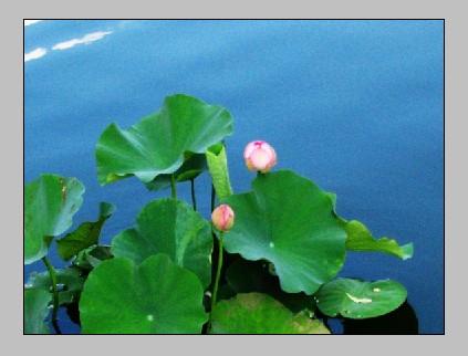 荷的身上不曾沾染一星尘埃。碧波有幸,能照它的影;鱼儿有幸,能吻它的足。蜻蜓被它的眼神吸引,亲它颊边漾着粉色笑靥的小酒窝。我站在时间与空间之外,心随目远,眸光翩翩,在荷与荷间往返如蝶。每朵荷都仰着脸,专注而矜持,每张脸谱都不重复。它们拒绝抄袭和雷同,它们是艺术,是大自然的杰作。偶而微风拜访,举起一张张阔大圆滑的绿叶,漾起无边的清凉。那摇曳着交叠着的红、白、绿,荡漾起袅袅的更加动人魂魄的娇媚。嫣红、娇白、碧绿,斑斓一片,染满我的心壁。立在荷塘草岸,凝神相望,眸动念转。瞬间,踏我履者是荷,亭亭临风者是我。岸上水中,不复可分,我与碧水清荷融为一体,轻轻摇曳,立在恬美的辉光里,立成了一阙残唐五代词。