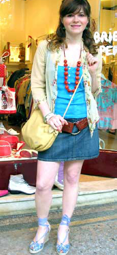 复古式的绣花衬衫,迷你裙,随意配上可爱的珠链配饰,让你变得小鸟依人。