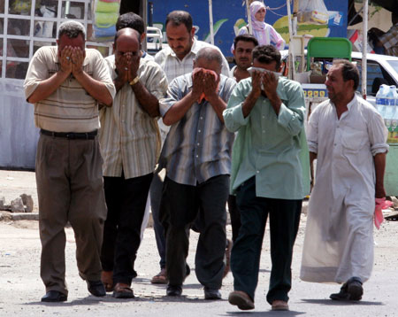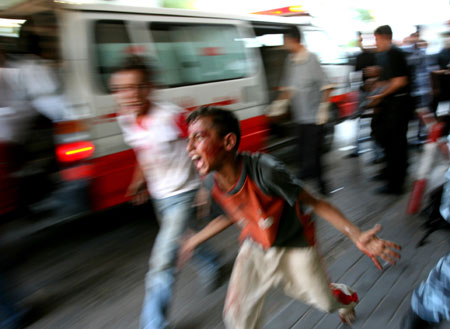 2006年7月31日,一名黎巴嫩老人被强行带离饱受战火摧残的村庄。