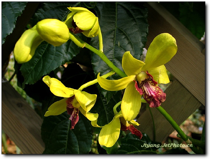 【景阳的贴子】今天又去了植物园,弄清了这两种花的名称,图一是"巧克力香水文心兰",近处闻闻的确有淡淡的巧克力香味: 图二是"秋石斛",一种杂交品种,颜色很奇特的!