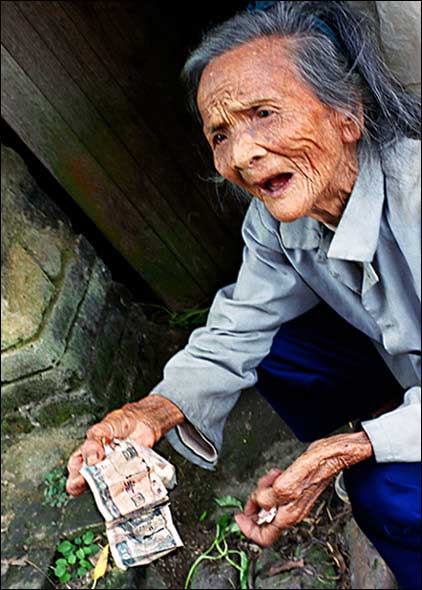 第一次看到老太太在竹林里捡柴的时候,我就怔住了,她很瘦、很虚弱,每捡一支干柴,每一次蹲站,仿佛都快支持不住了,仿佛都要倒下去了,虽然满地都是树叶,可她捡拾起来都要付出生命的最后力气。
