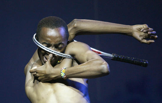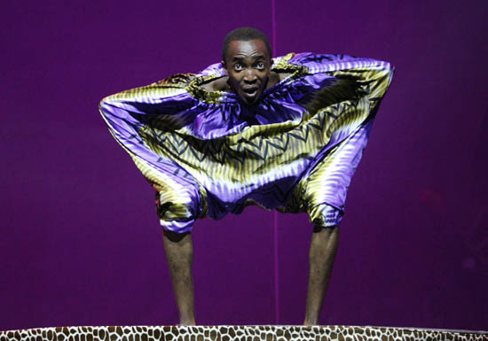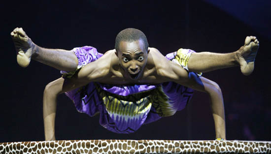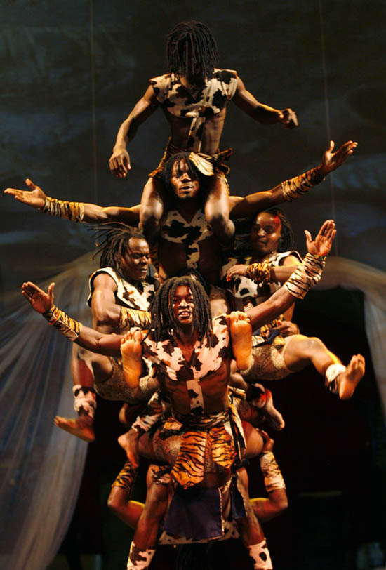 Image Description : Members of the African circus "Mama Africa" perform during the show in Dortmund June 15, 2007. REUTERS/Ina Fassbender (GERMANY)