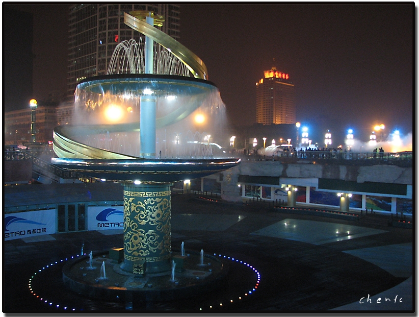 新天府广场每天晚上7时半-至8时半,华灯齐放,音乐声起,音乐喷泉随乐曲喷发出不同图案,十分好看。