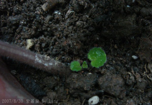 用紫蘿蘭葉子泡水發根,然後種入花盆兩個月,終於發芽了...