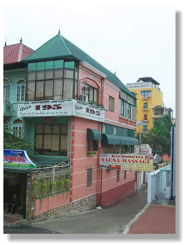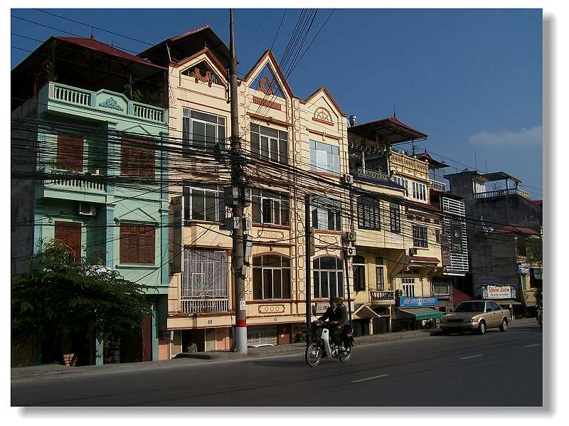 1.这是从下龙湾去河内的路上所见.越南民房挺有趣,门面不大,进深倒很长,整座房子就象是个侧立的火柴盒.而且房子外墙都涂上鲜艳的色彩,倒更衬托出人民衣着的素雅.