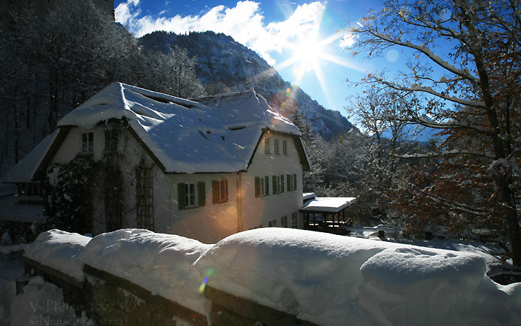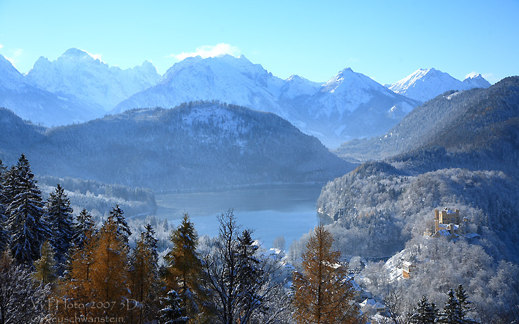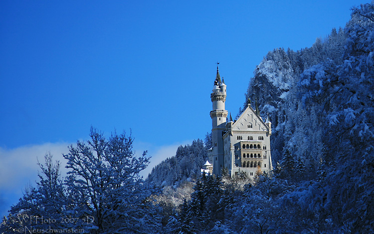 新天鹅堡,德国南部,位于巴伐利亚州Fussen小镇,在阿尔卑斯山脉中。