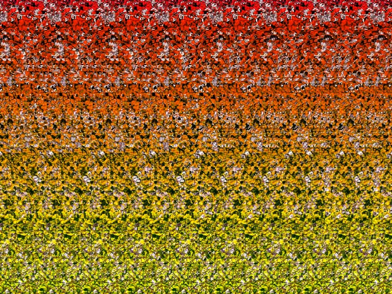 2、另一种观看方法 从电脑上看费劲的话,可以这样,如果画面上标有两点(如没有,可以通过仔细观看,在横向上,相隔约3-5厘米,就有相同的图案,如两个相同颜色和大小的点等),那么可以用两个颜色深点的线垂直粘在显示器屏幕的上面(可以进入屏幕少许),使两条线垂直并分别与两点相连。然后,在显示器后面上方放个小东西做参照物,沿显示器上边沿来看参照物,前后移动眼睛的焦点,使左眼、左线、参照物成一直线,右眼、右线、参照物成一直线,可以挡上一只眼调整,然后两眼看参照物,此时两条线就变成了三条,让视线沿中间的线爬进立体画面就看到了立体效果。