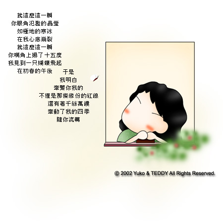 不知不觉,习惯了撑起雨伞走在雨里,穿上风衣走在风里。习惯了让无意飘入伞下的雨淋乱了发丝,让无意穿透纤维的风吹湿了睫毛。习惯了深夜三点用失眠折磨神经,下午三点用空虚饥饿细胞。失眠和饥饿交错的十字路口,迷失缘由感染了一种自虐情绪。据说自虐是寂寞 国度流行感冒的特征。