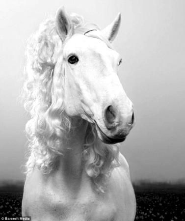 设计师为它们梳理好毛,并戴上特别设计的假发。不过每匹马的拍摄都折腾了好几个小时,因为它们会不停地摇晃脑袋,有时会嘶叫几声,或者不停地抖动。
