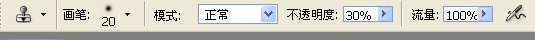 为了能够更好的使用这个工具,可以在菜单栏下方对话框中对画笔形状,透明度进行设置