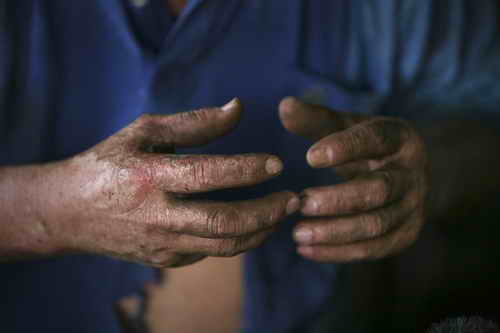 描述:郭常喜说,炼剑用的人骨都是一些捡骨朋友,在公墓捡到的无主骨骸。长年的铸剑生活让郭常喜的手变得异常粗糙。