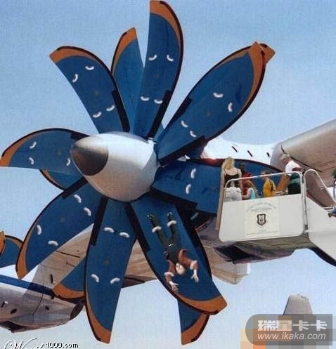 就这么站在飞机机翼上,可是什么保护措施都没啊……