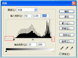 1. 打开原图,首先我们调节曝光。方法有很多,我习惯于用色阶调节。简单的方法就是左边(暗部)和右边(亮部)的标尺拉向中间,把空出的地方跳过。
