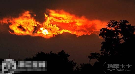 今天清晨,受第七号台风、“圆规”、“南川”热带风暴的影响,杭州市区的上空出现难得一见的“流火云”。5时许,不少城南的市民看到天空中出现火红云霞,如火山口的火焰喷发,旁边还显现出“亭”字形状,持续15分钟,太阳升起后才慢慢散去。