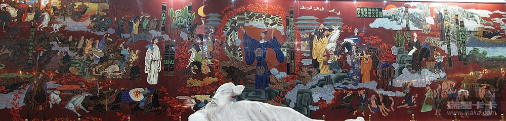 大雅堂大型磨漆壁画,由四川省美协主席、著名画家钱来忠组织班子六易画稿,中国十大民间艺术家之一的xxx领衔制作。壁画长16米,高4米,是迄今为止国内最大的磨漆壁画。整幅壁画金碧辉煌,气势恢宏,真实形象地再现了《兵车行》、《茅屋为秋风所破歌》等杜诗代表作所表现的内容。