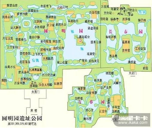 )三园组成,三园平面呈倒"品"字形。有园林风景百余处,建筑面积逾16万平方米,是清朝帝王在150余年间创建和经营的一座大型皇家宫苑,有“万园之园”的美称。