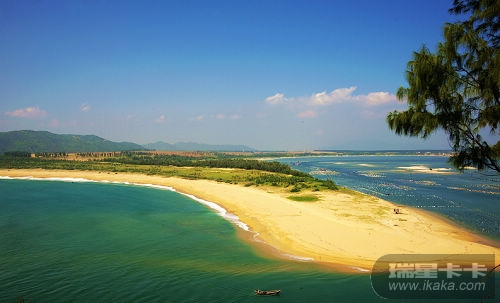 站在玉带滩上,你不得不被大自然的鬼斧神工所折服.一边是烟波浩淼、惊涛拍岸的南海,一边是水阔风纯、澄净如镜的万泉河。湖光山色、内外相应,景色奇异迷人。