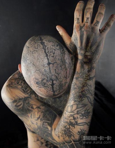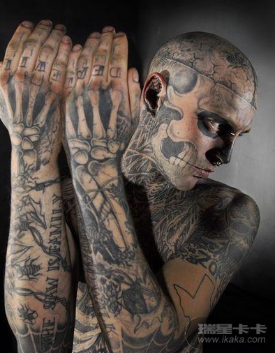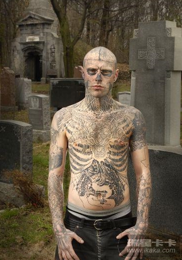 瑞星卡卡安全论坛综合娱乐区影音贴图 僵尸男孩纹身细节图 通体纹身走红时尚界