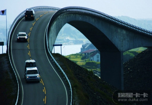 大西洋海滨公路,建造在挪威阿尔法罗密欧,此公路亦称“大西洋之路”,独特的建筑特点,使它被不少人称为真正的通天之路。大西洋海滨公路由8座小桥组成,每座桥又经过一个小岛。这条公路设计独特,经过了各个小岛上的自然景观,马赫马萨尼在谈到这一点时说:“这是一条颇具匠心的公路,为欣赏道路两侧美景提供了机会。”这条路又名64号公路,被挪威人评为“世纪建筑”。
