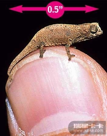 枯叶变色龙是世界上最小的变色龙。图中这一只长仅1.27厘米,发现于马达加斯加西北海岸的雨林之中,这种变色龙母的通常比公的体型略大些。