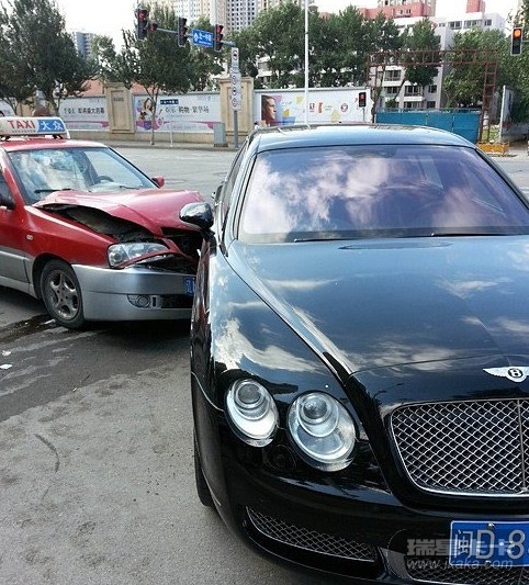 7月3日,车祸现场。当日,辽宁省沈阳市一辆出租车与一辆价值四百多万的宾利轿车相撞。出租车上位于副驾驶的乘客受伤送至医院,出租车损毁严重,已无法行驶,宾利车仅车门受损,仅车门维修费高达二十万元人民币。经现场调查警方认定宾利车负有全责。