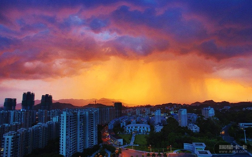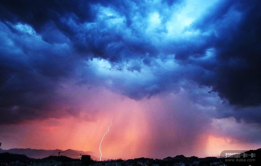 7月29日,福州气温创当地今年新高,达到38.8℃。图为当日傍晚,闪电划破长空,闷雷阵阵后,雨滴一滴未落。