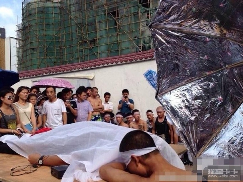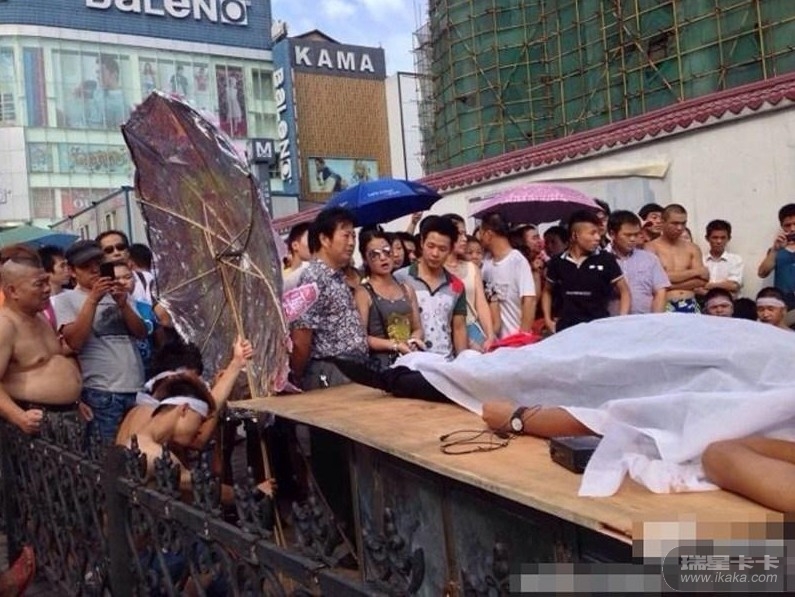 武汉中山大道佳丽广场,十多名赤膊男子披麻戴孝,用门板抬着一具“尸体”在此示威,宣称城管打死人,还将江汉城管某执法队门牌取下,“死者”躺了数小时后,因天气太热“复活”逃跑。