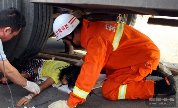女孩被卷入车轮下 坚强镇静等待营救