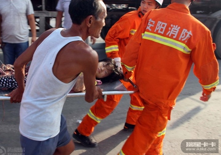 2013年8月9日上午7时25分,在河南省安阳市安阳县曲沟镇安林路段,一名11岁的小女孩被一辆满载货物重约40吨的挂车卷入车轮下,生命垂危。接到报警后,安阳消防官兵迅速赶赴事发现场投入施救。