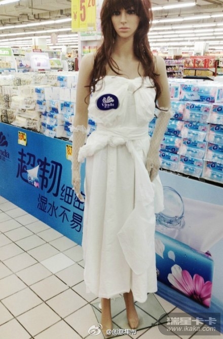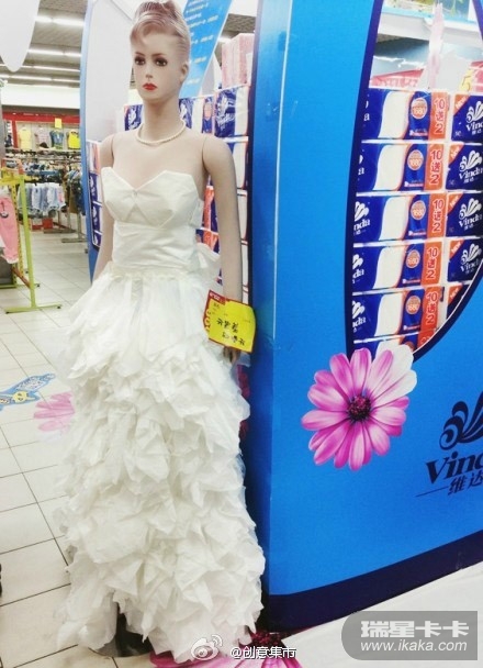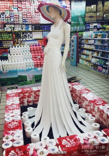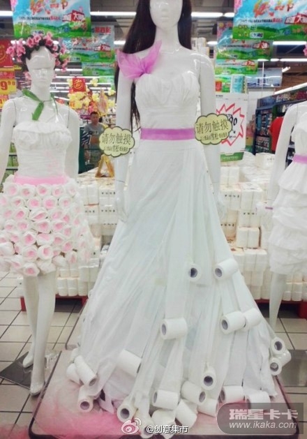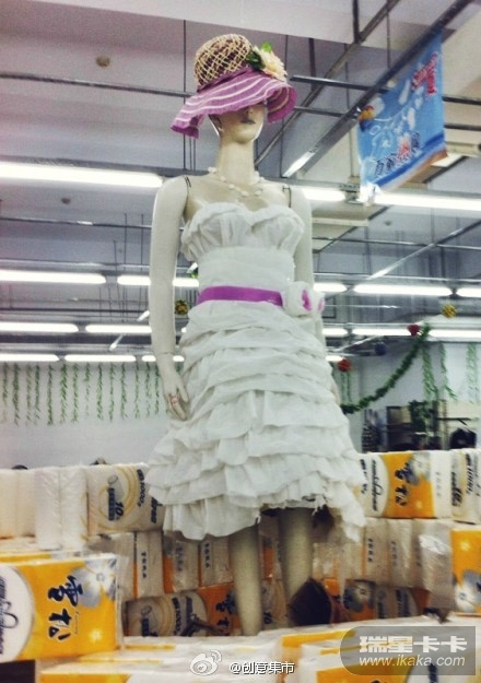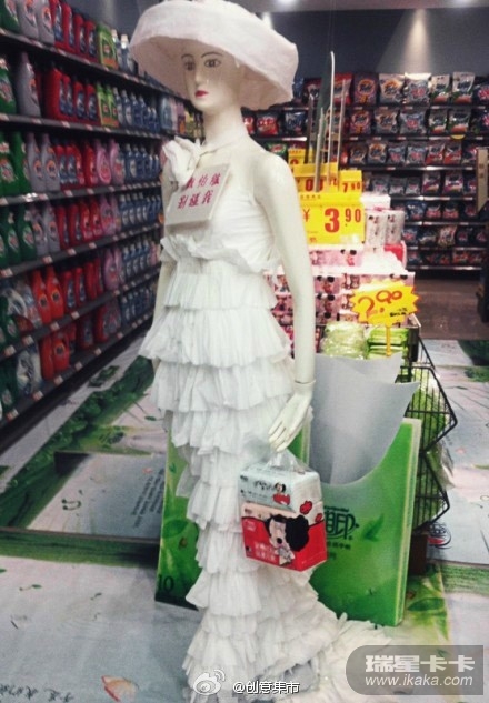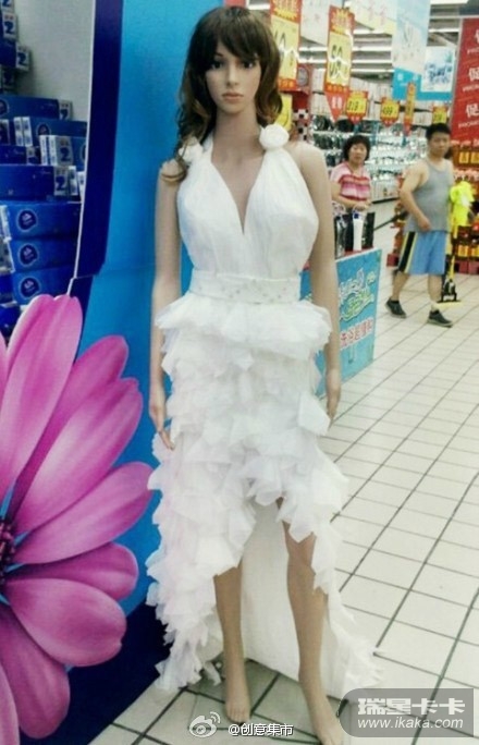 超市阿姨们用实际行动告诉我们,当下时尚圈最大气最欢型最上档次的面料不是缎面不是丝绒更不是雪纺纱,而是:餐巾纸!!!