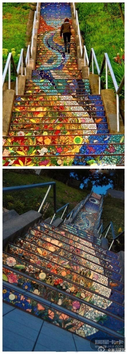 旧金山的秘密马赛克楼梯, 像踩在一副油画上~