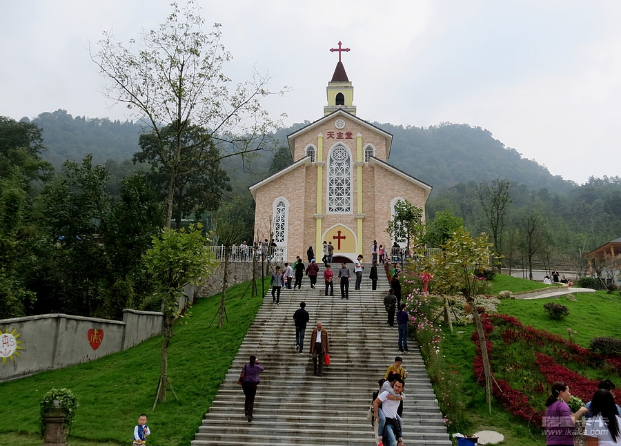 白鹿镇在2008年5.12汶川大地震中,基本被夷为平地了,这是灾后重建的。因原来有个法国教堂,建筑风格就采取了法国风情。看起来有点洋味道。