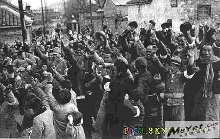 1937年12月13日,日军进入南京城,路旁中国人拍手欢迎.